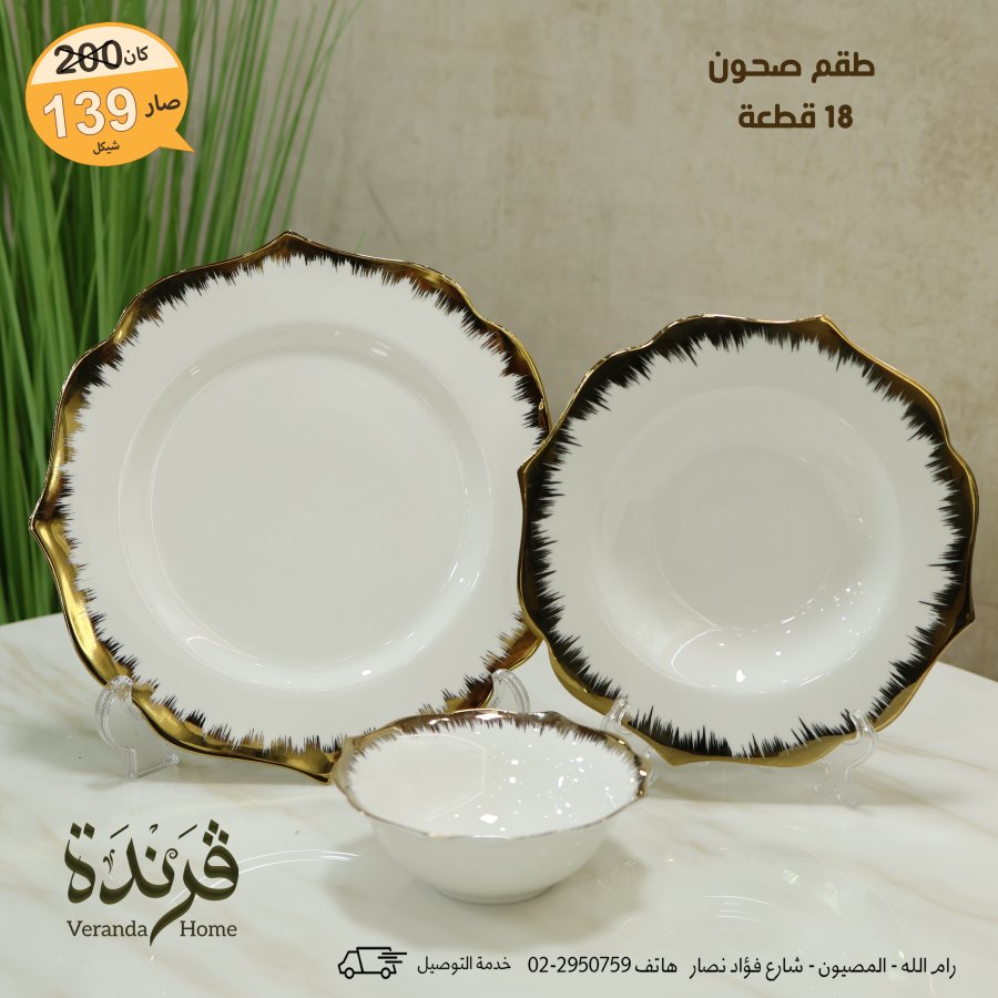 طقم صحون 18 قطعة ابيض مع ذهبي