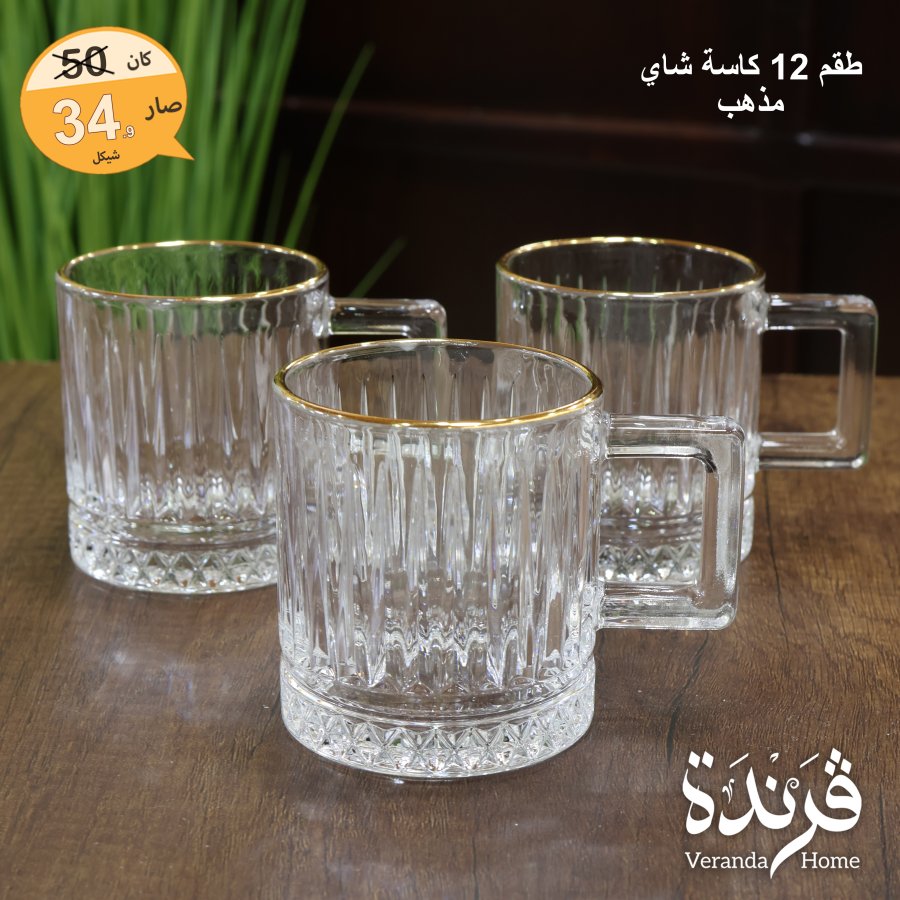طقم 12 كاسة شاي مذهب