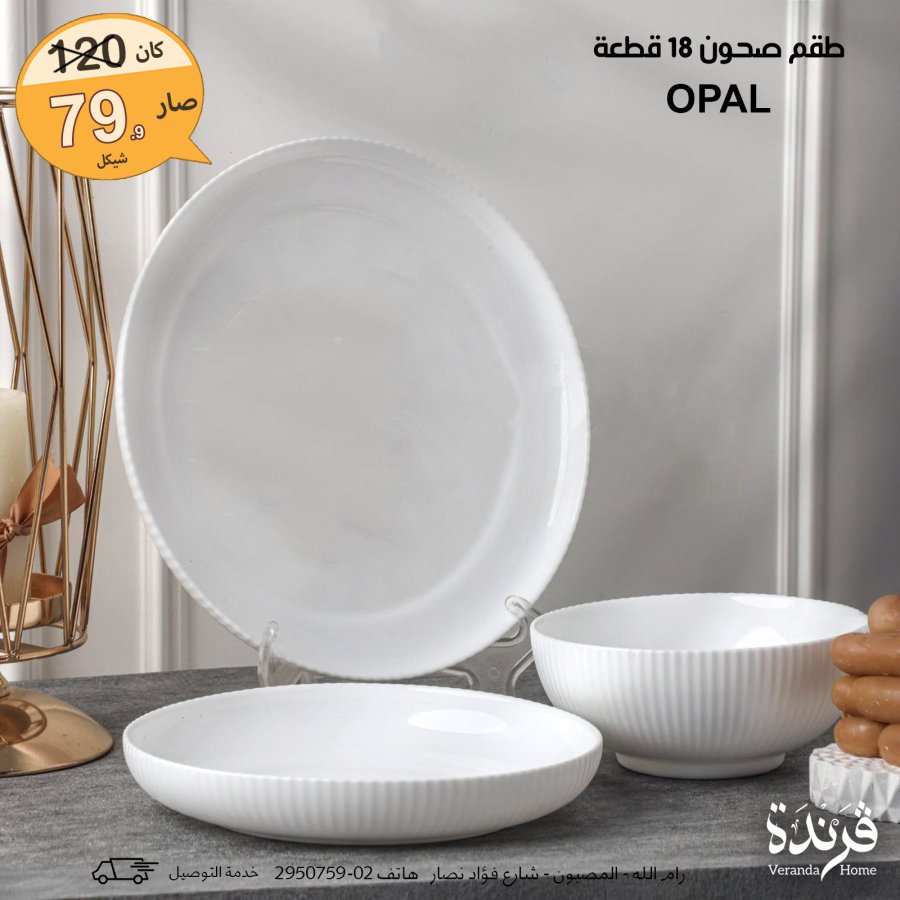 طقم صحون opal ابيض 18 قطعة