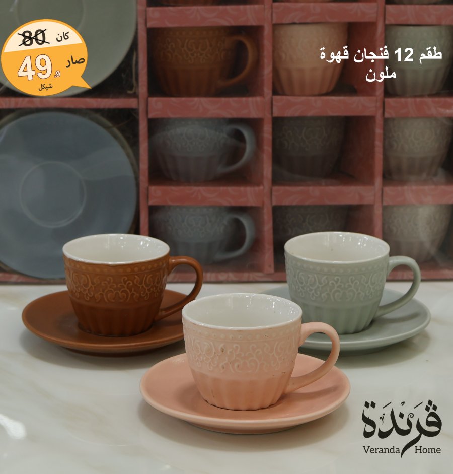 طقم 12 فنجان قهوة ملون
