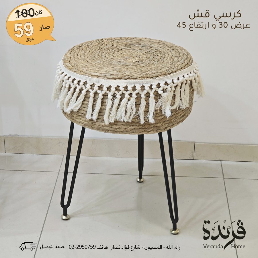 كرسي قش طويل ارتفاع 45 سم وقطر 30 سم