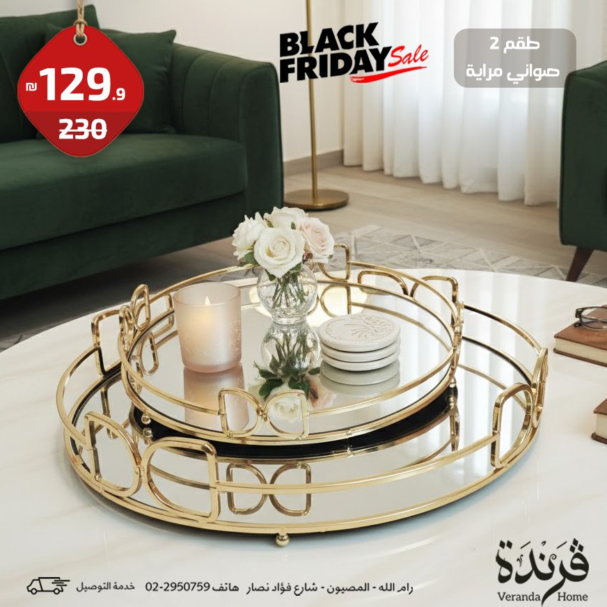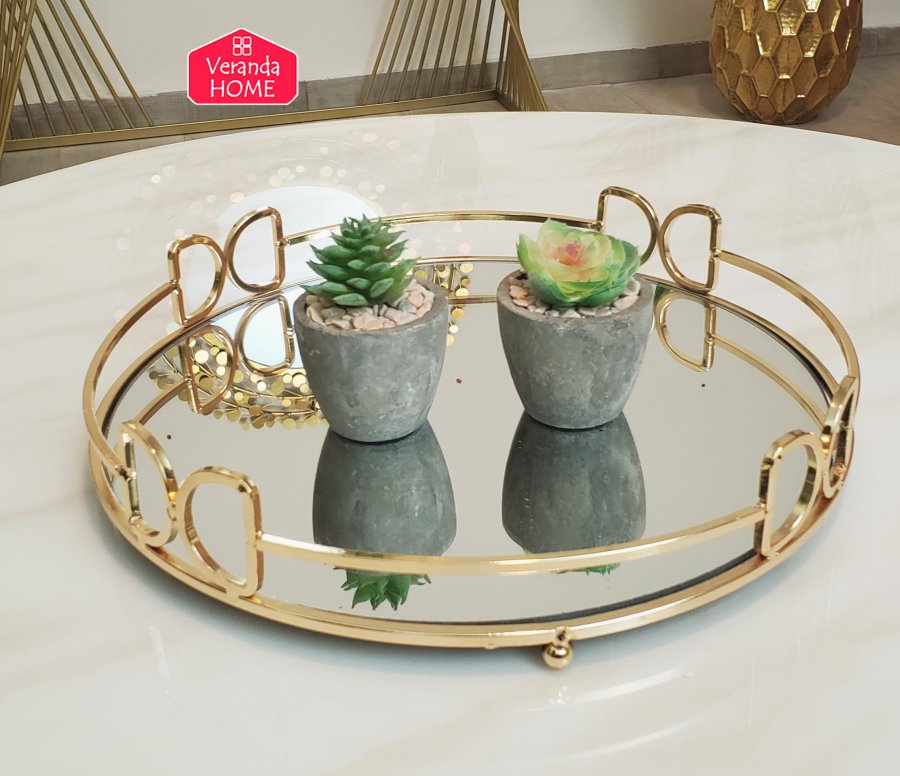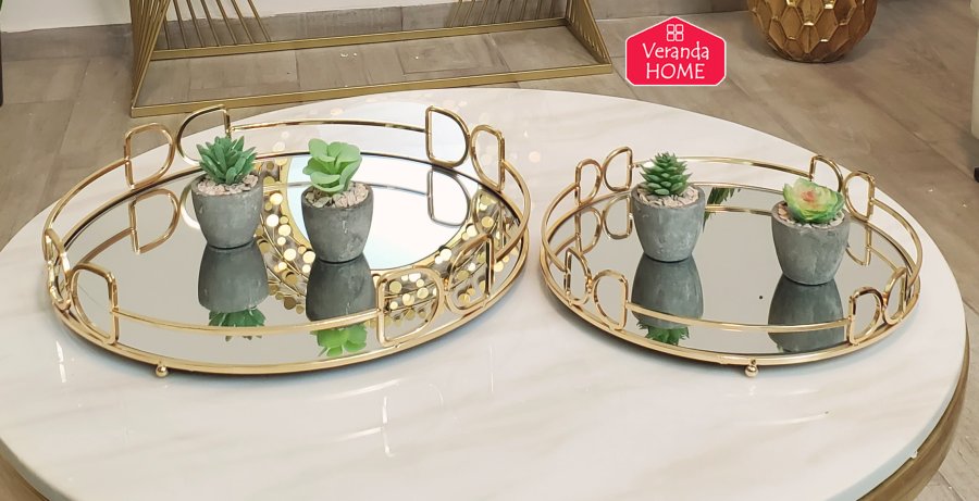 طقم 2 صواني مراية مع اطار معدن ذهبي