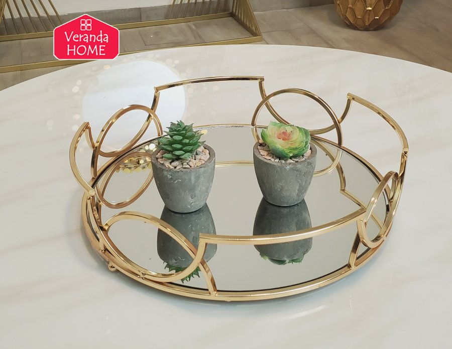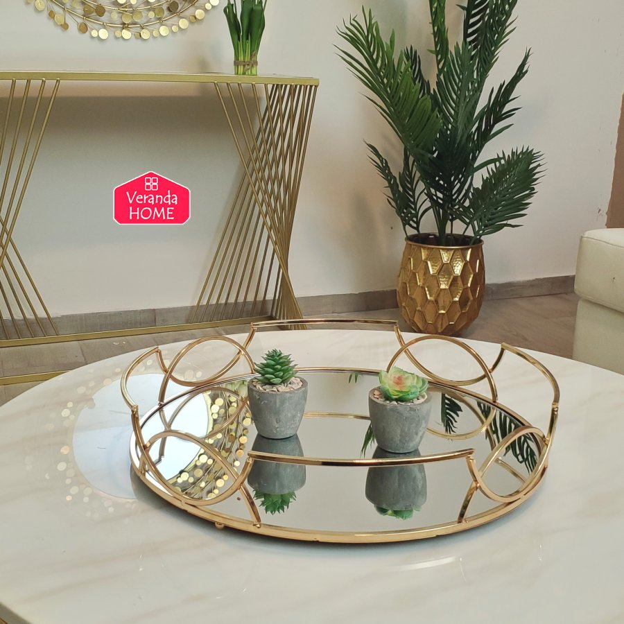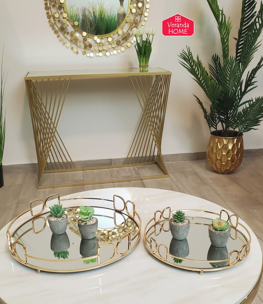 طقم 2 صواني مراية مع اطار معدن ذهبي
