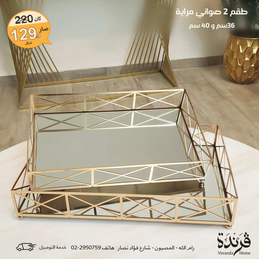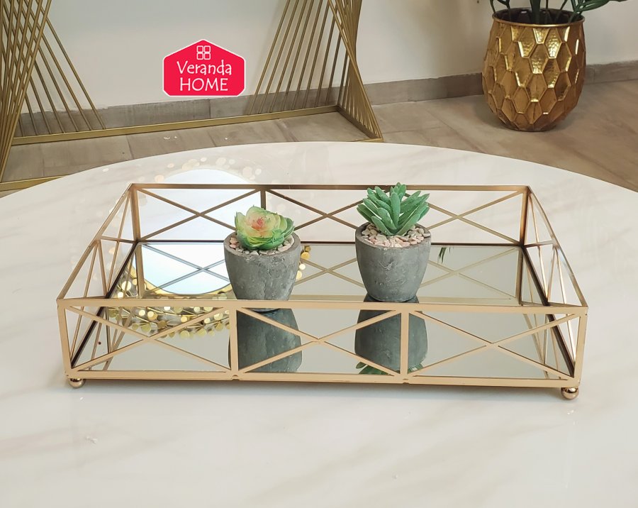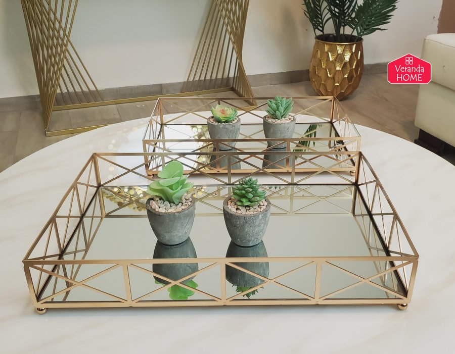طقم 2 صواني مراية مع اطار معدن ذهبي