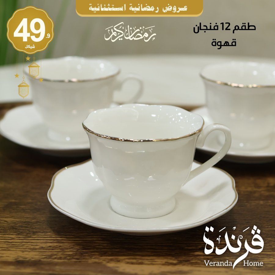 طقم 12 فنجان قهوة بورسلان ابيض