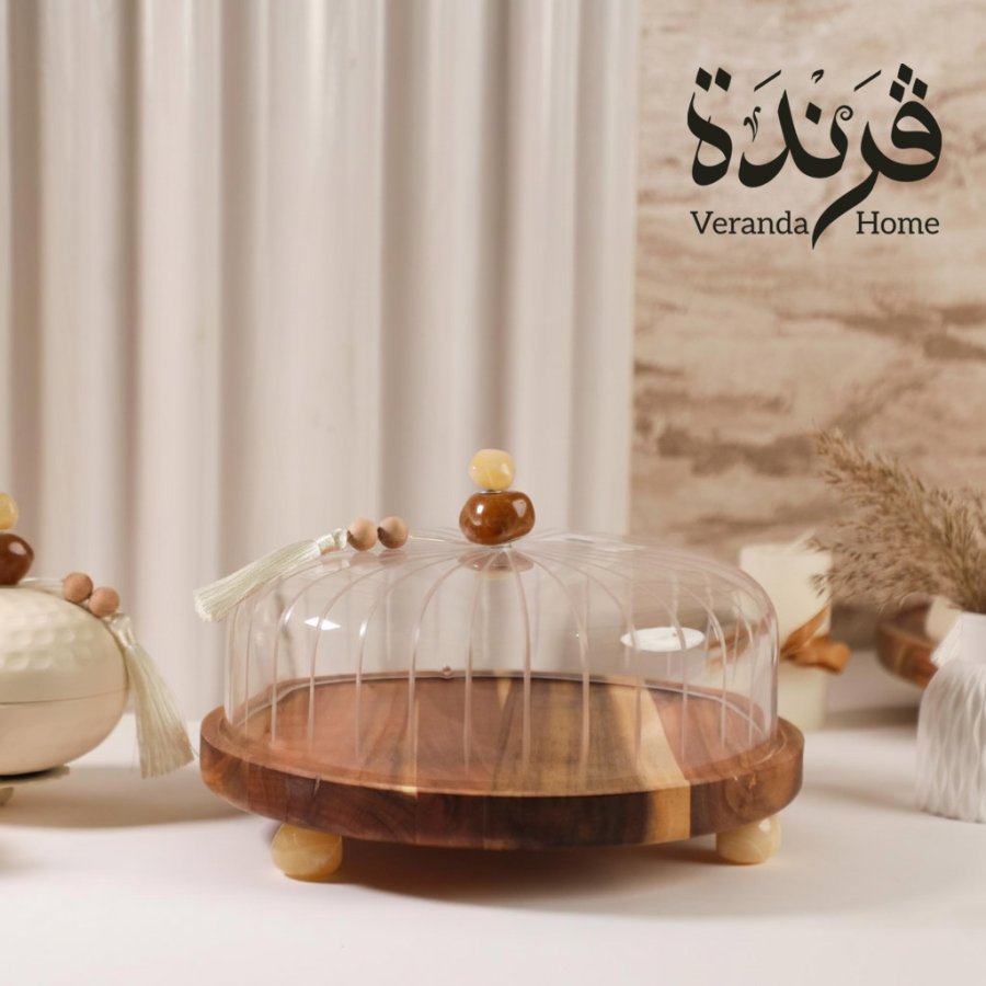قالب كيك زجاج مع قاعدة خشب