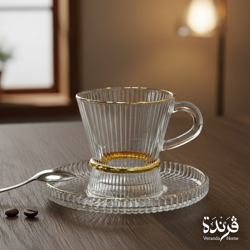 طقم 6 فناجين قهوة زجاج بخصر مذهب