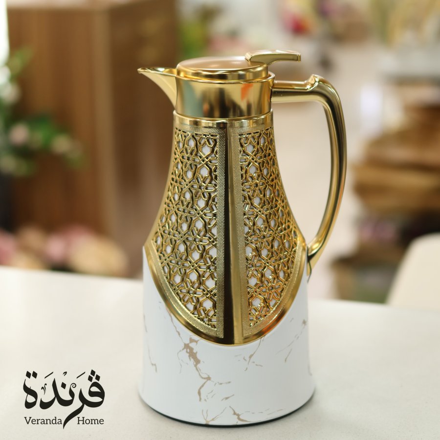 تيرموس قهوة معدن ابيض مع ذهبي