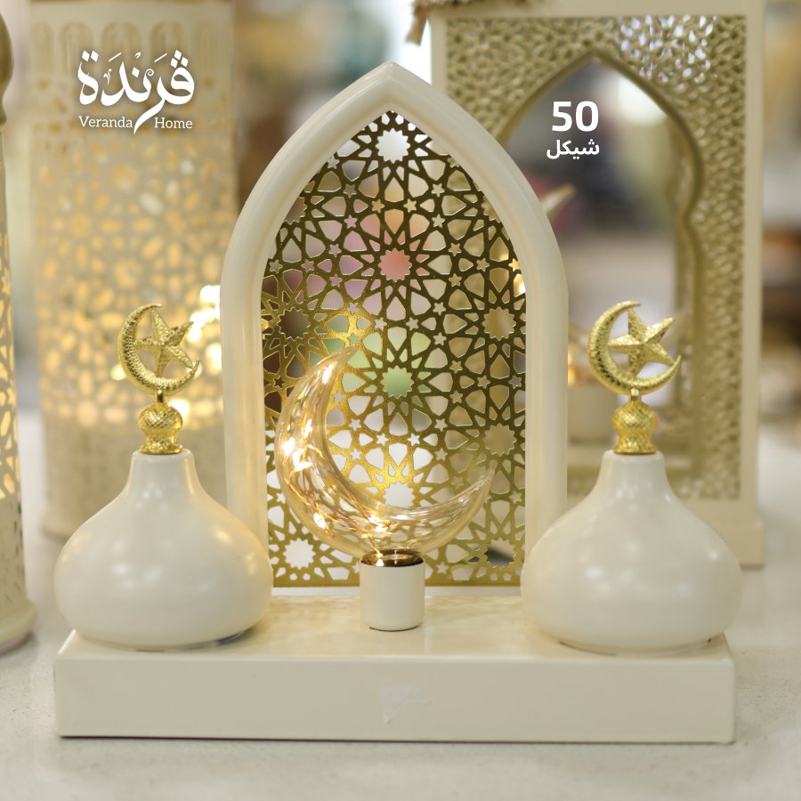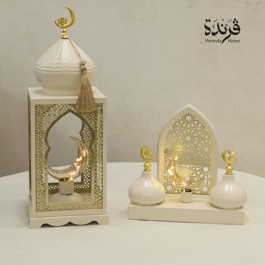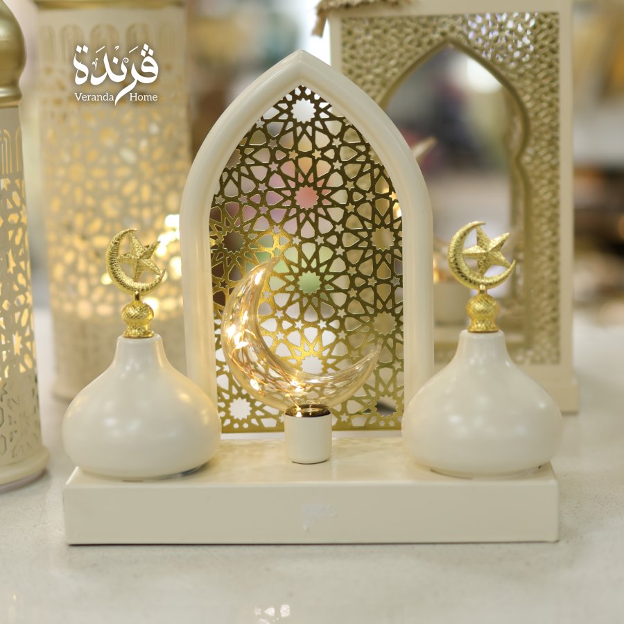فانوس ديكور إسلامي مع هلال مضيء وإطار محراب