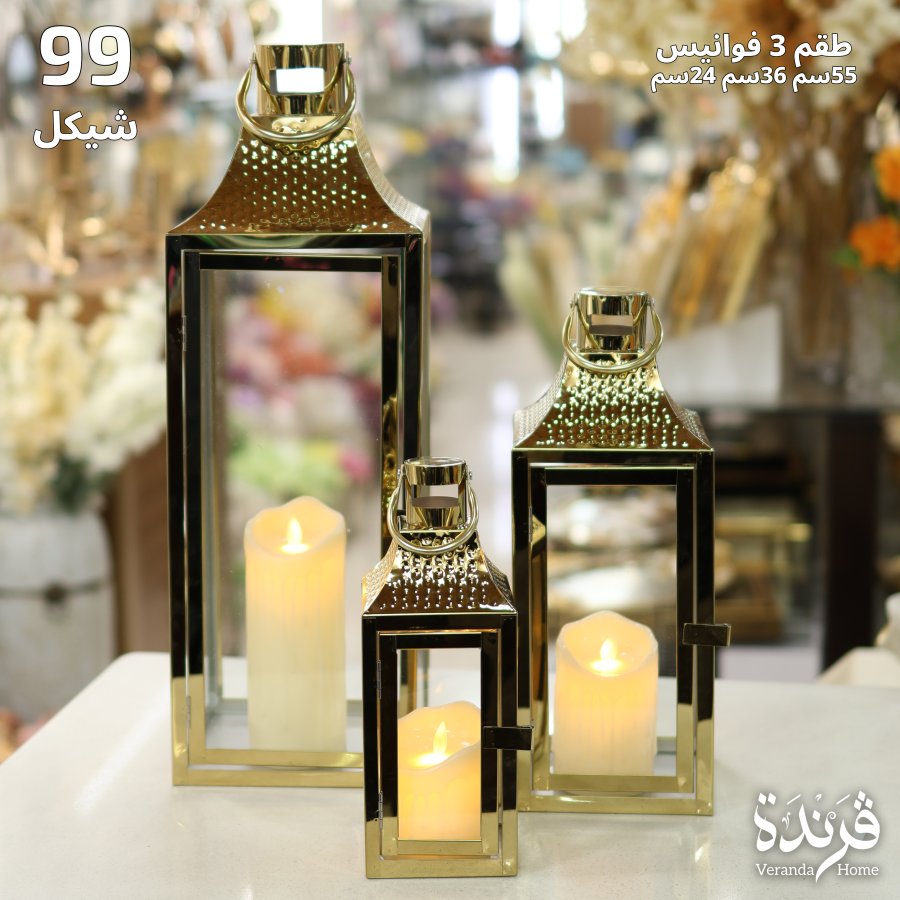 فانوس رمضان معدن مزخرف ذهبي اضاءة ليد