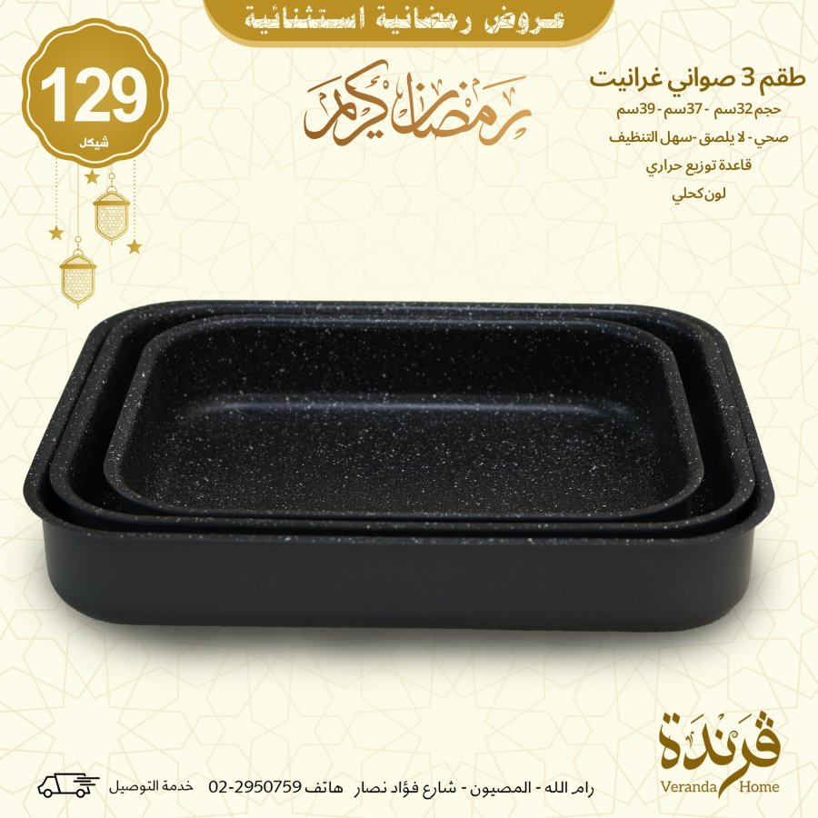 طقم 3 صواني جرانيت مستطيل