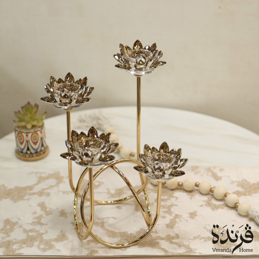 معدان معدن ذهبي كريستال بتصميم وردة لوتس رباعي فاخر