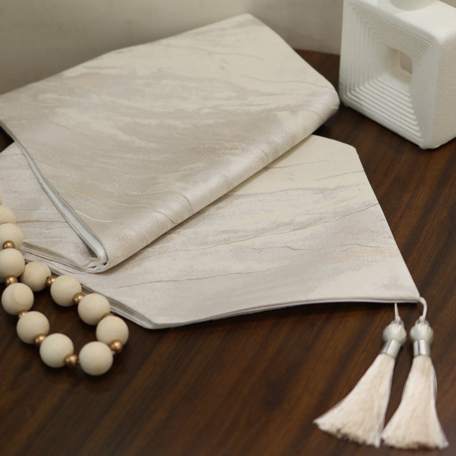 رنر طاولة بيج فاتح مائل للعاجي رخامي ناعم بخطوط طبيعية هادئة