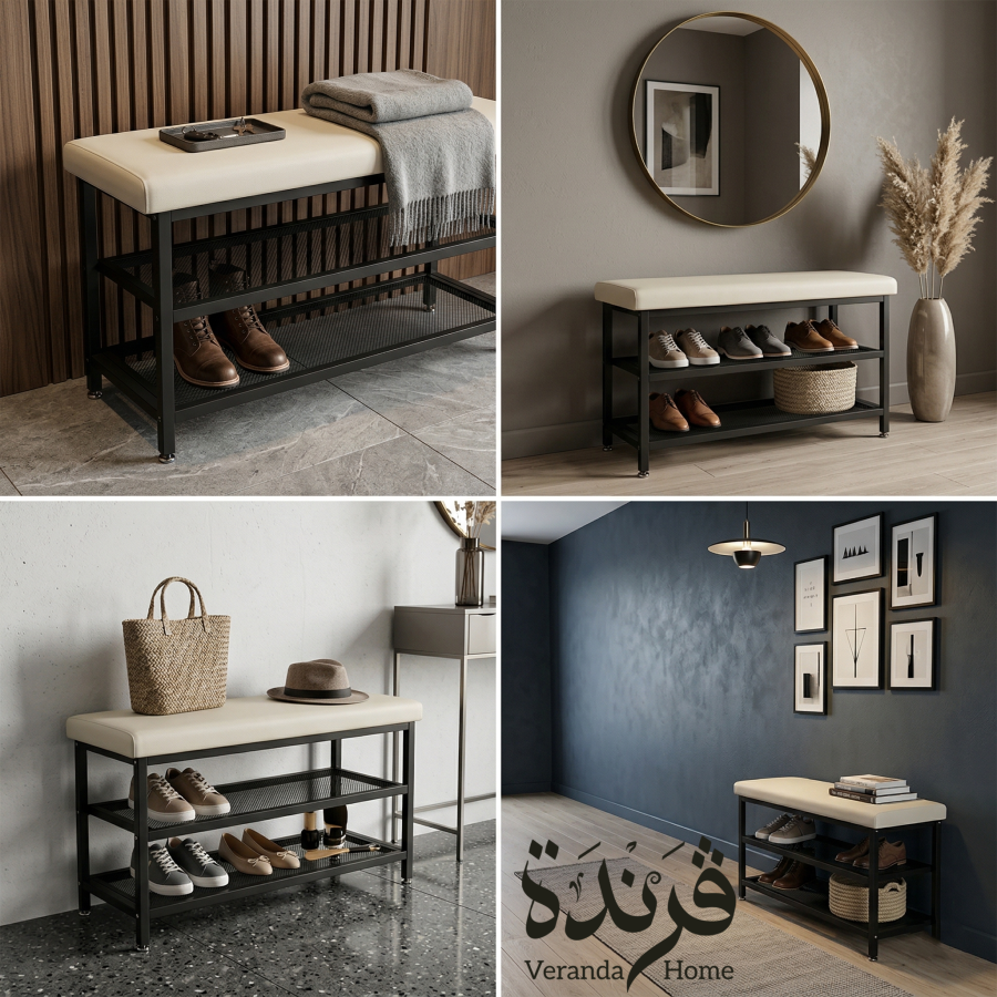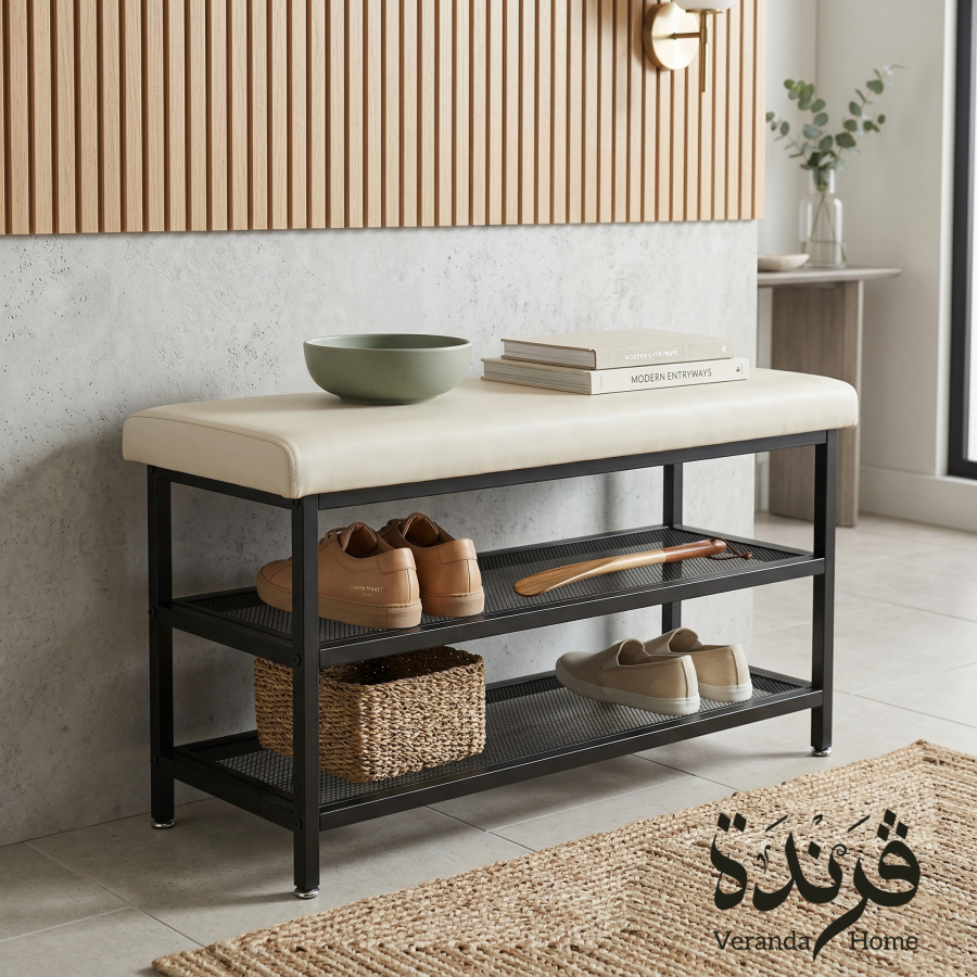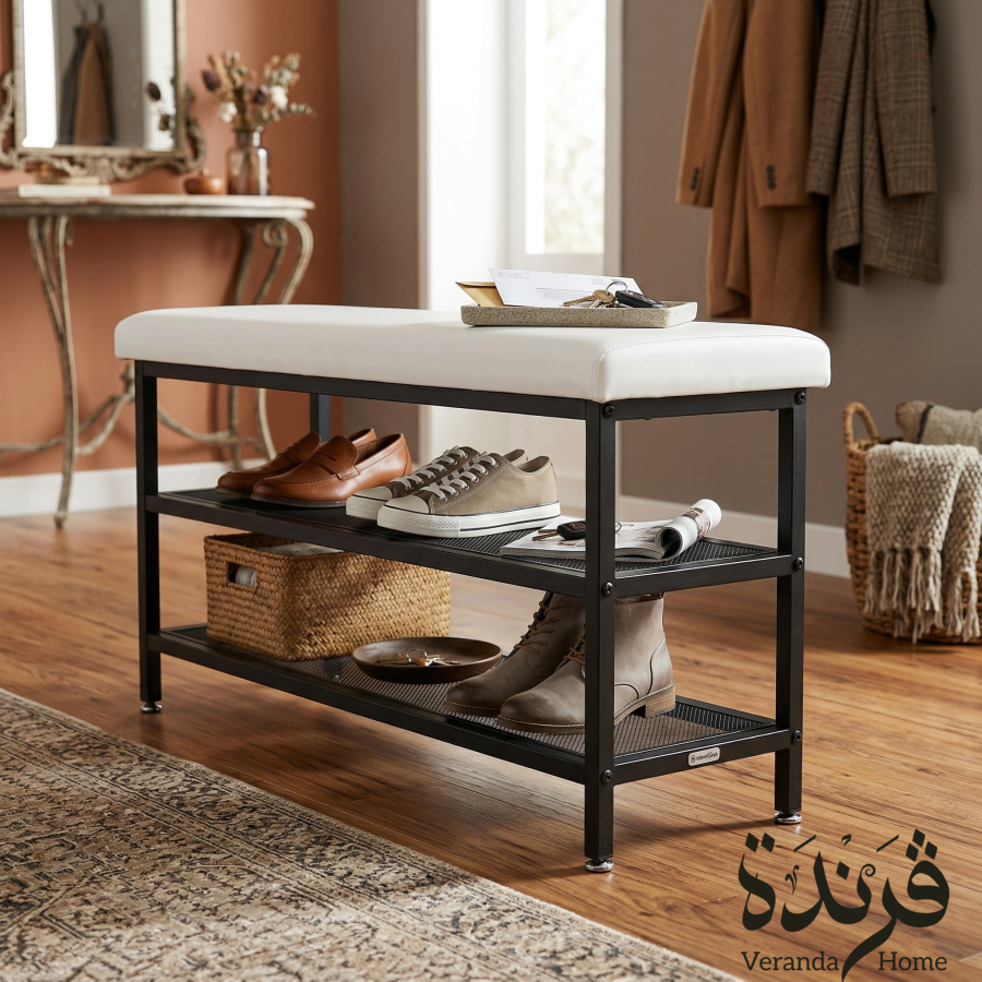 مقعد معدن مع رفوف