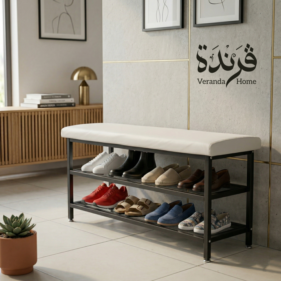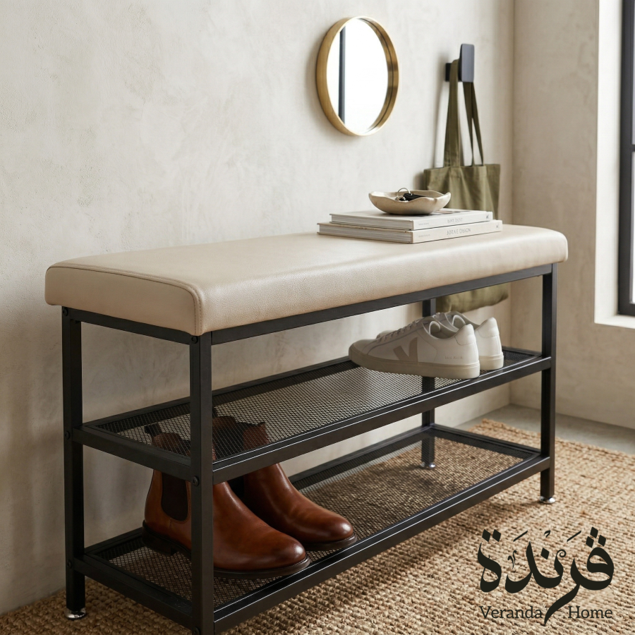 مقعد معدن مع رفوف