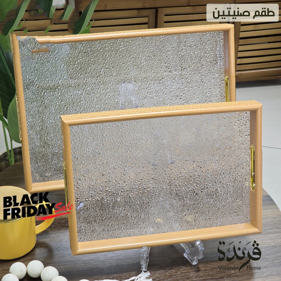 طقم 2 صواني مع زجاج اكريليك مثلج نقشة ناعمة