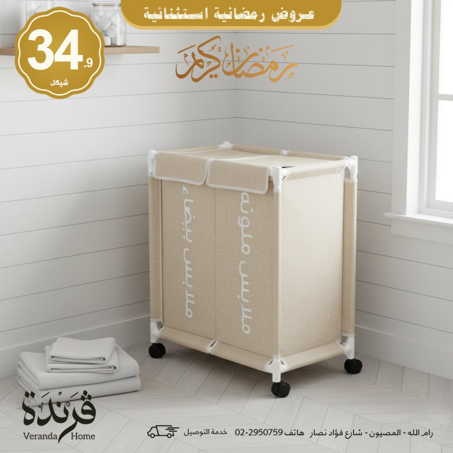تحتوي على قسمين: قسم الملابس البيضاء وقسم الملابس الملونة.