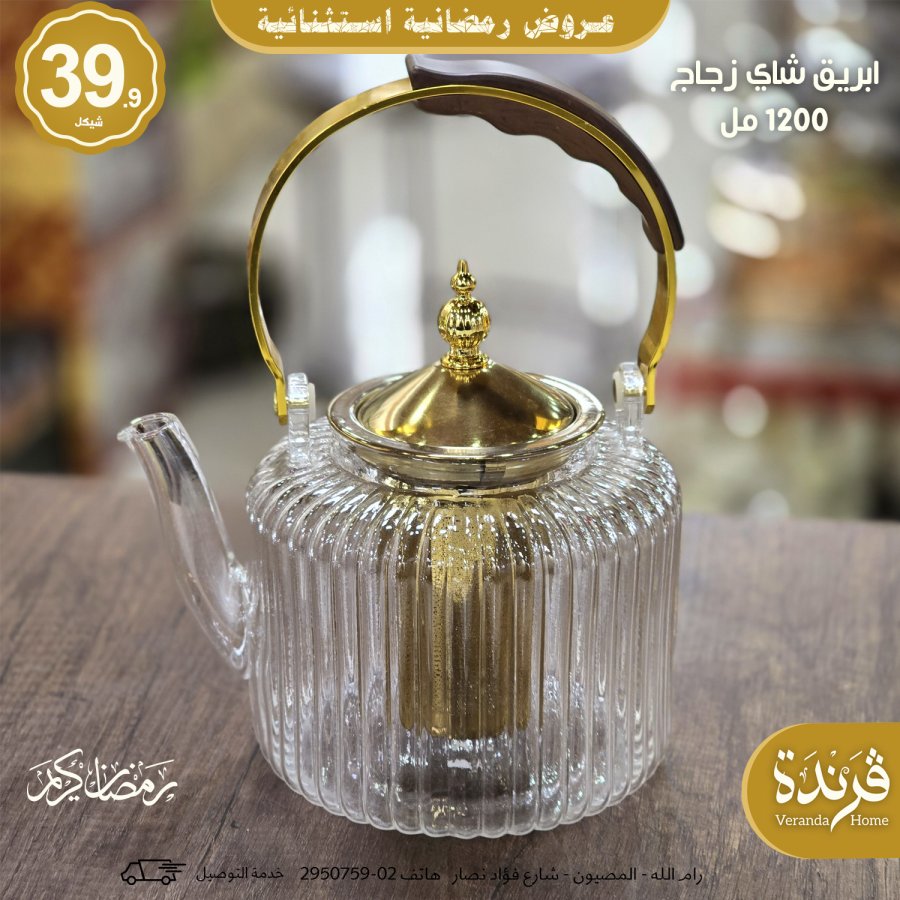 سعة الابريق : 1200 مل
