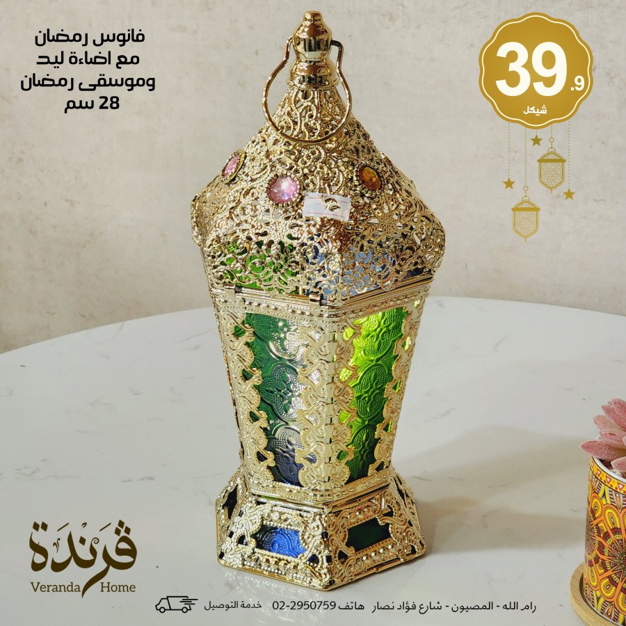 فانوس مع اضاءة وموسيقى رمضان 28 سم