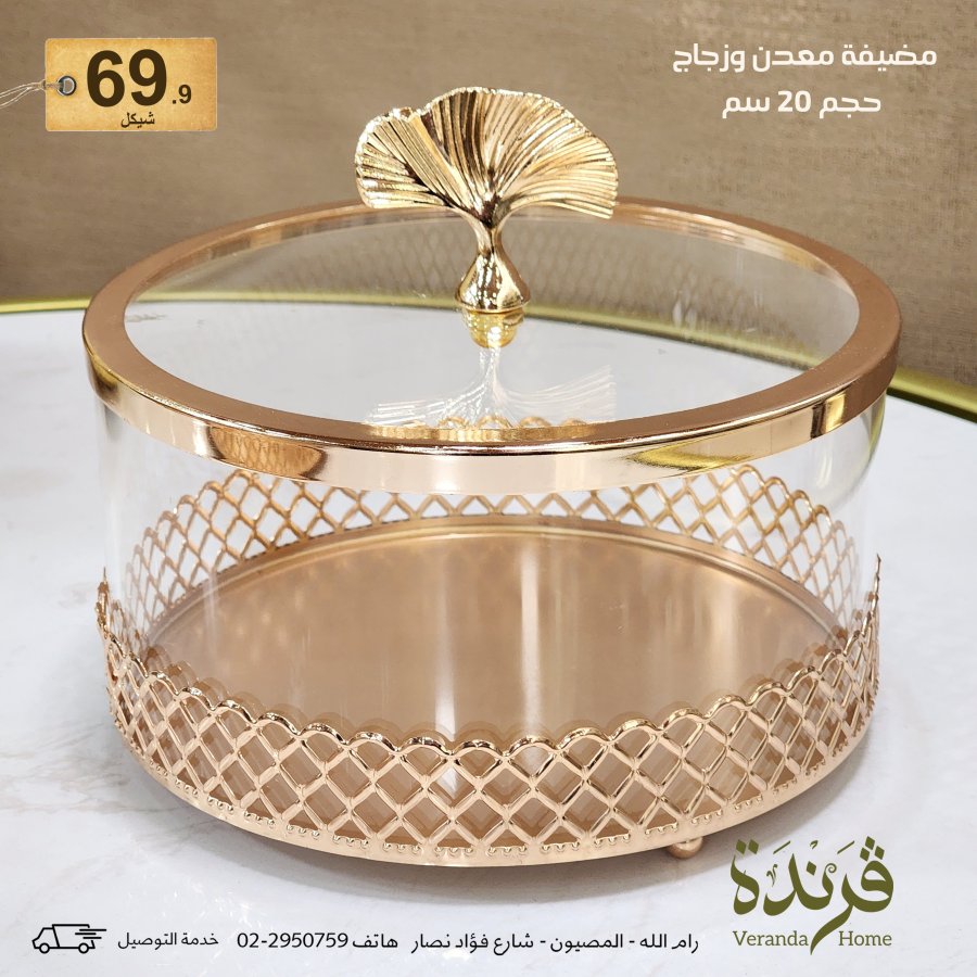 مضيفة دائرية معدن وزجاج حجم 20سم